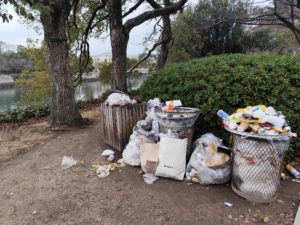 年末年始はゴミの回収が休止されても、観光客の足は止まらず、ゴミは出続けるためこのような姿になっています。
