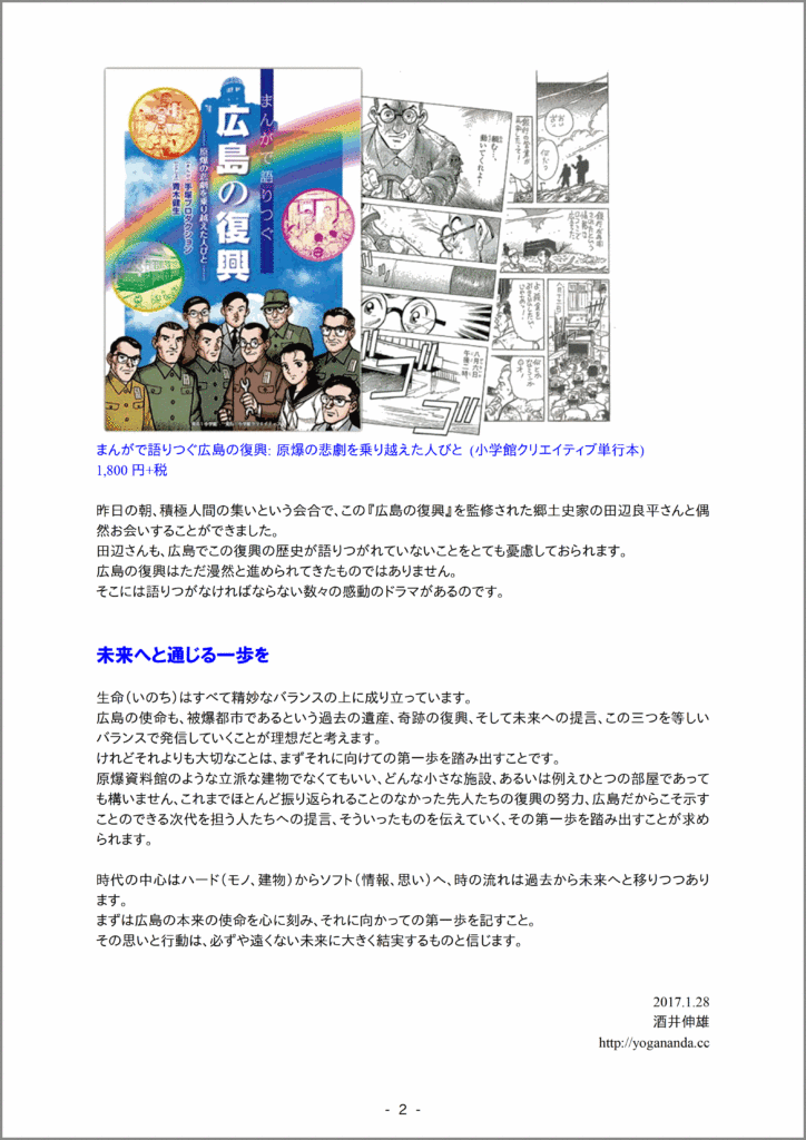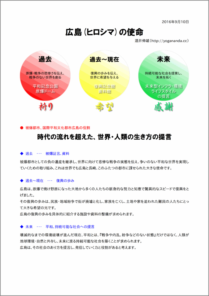 そんな思いで、今から約十年前、『広島(ヒロシマ)の使命』と『広島から発信する未来への希望と提言』という二つのレポートを書きました。